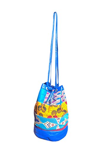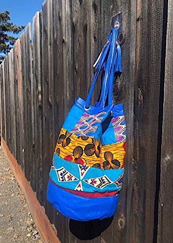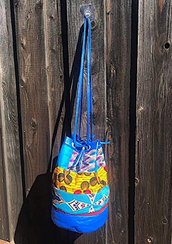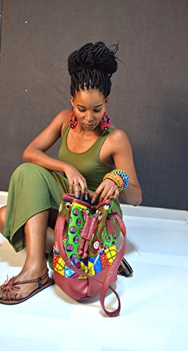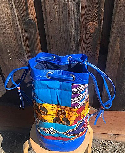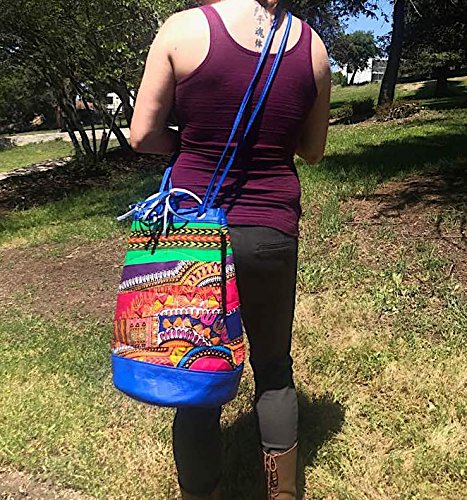 Handmade Faux Leather Boho Crossbody with African Ethnic Dashiki Print Bucket Bag