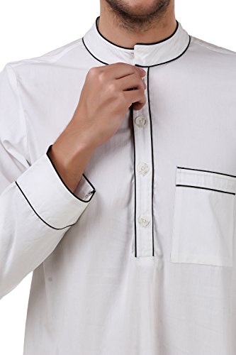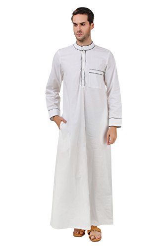 (MyBatua)/Men/Sleepwear/DIRECT FROM USA/MyBatua White Cotton Galabiyya, Daffah,Dishdash,Men thobe,Islam Febric GM-036