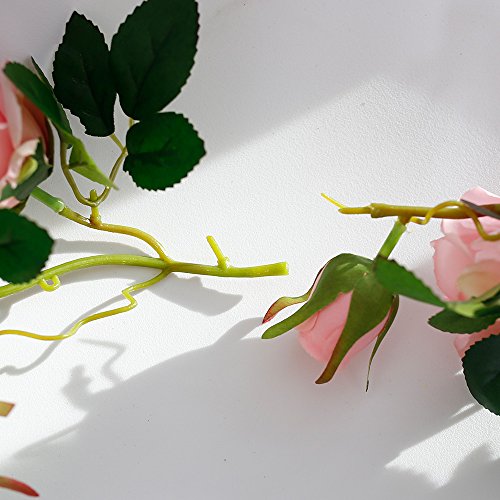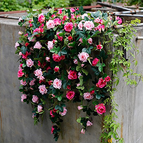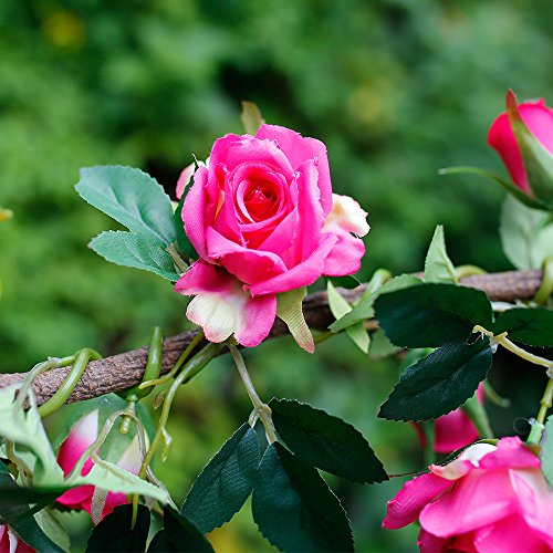Yiliyajia Artificial Silk Rose Flower Ivy Vine Leaf Hanging Garland Home Wedding Decor,Pack of 2 (Red)