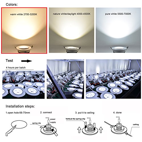 LED Downlight Recessed Lighting Dimmable Warm White 110V 360LM 4W Equal 48W Halogen lamp Fixture Round for home deco ect Complete Recessed Lighting Kits Pack of 10