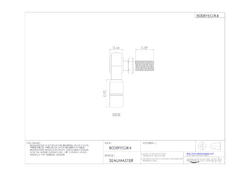 Sealmaster TR 5Y Rod End Bearing With Y-Stud, Three Piece, Precision, Non-Relubricatable, Right Hand Female to Right Hand Male Shank, 5/16"-24 Shank Thread Size, 7/8" Overall Head Width, 0.719" Thread Length