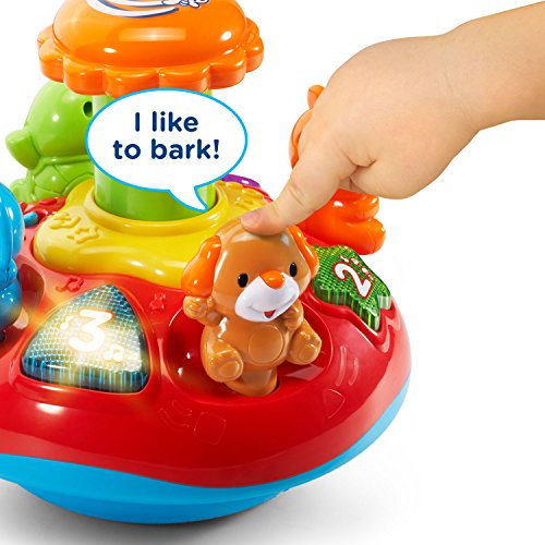 Press the four animals on the Twirl and Learn Animal Top to hear them introduce animal names, sounds, colors and play sing-along songs