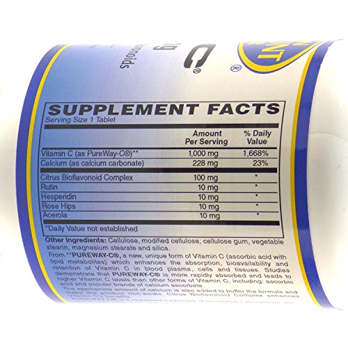 Studio : Vitamin Discount Center Publisher : Vitamin Discount Center Product Description From PUREWAY-C®, a new, unique form of vitamin C which enhances the absorption, bioavailability and retention of Vitamin C in blood plasma, cells and tissues. Studies demonstrate that PUREWAY-C® is more rapidly absorbed and leads to higher Vitamin C levels than other forms of Vitamin C including: ascorbic acid and popular brands of calcium ascorbate. The appropriate amount of calcium is also added to buffer the formula and make the product non-acidic. Citrus Bioflavonoid Complex enhances Vitamin C's benefits. Adults take one (1) vegetarian capsule, one (1) to two (2) times daily with meals, or as directed by a health care professional. Store in a cool, dry place, and away from direct light. These statements have not been evaluated by the Food and Drug Administration. This product is not intended to diagnose, treat, cure, or prevent any disease. 0