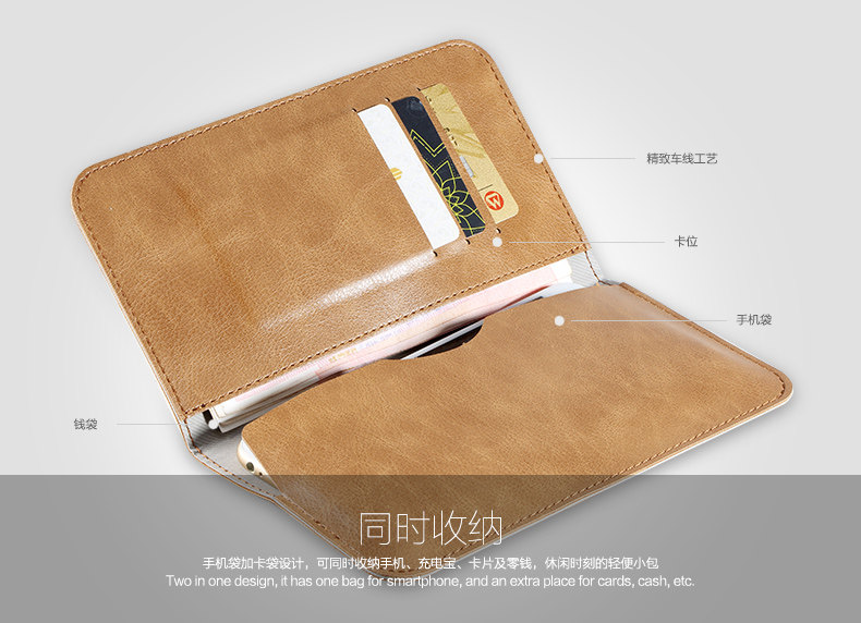 It is multifunctional case that can place mobile phone, slim power bank, cards, and cash, etc.