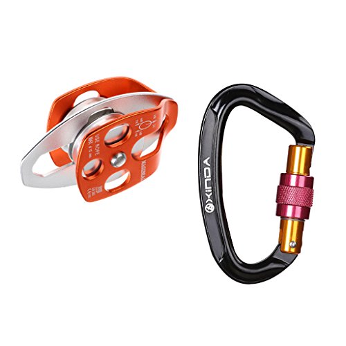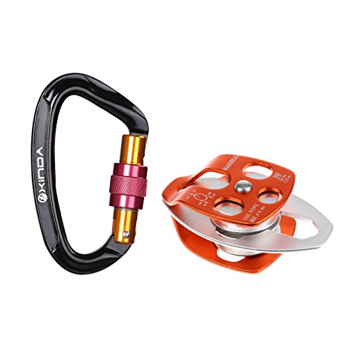 Specification: Pulley - Material: Aluminium Magnesium Alloy - Strength: 32KN / 7100 lbs - Max Diameter of rope: 15mm - Bearing: ball - Dimension: approx. 15 x 8.2 x 5.5 cm/ 5.9 x 3.2 x 2.2 inch - Color: Orange Silver Carabiner - Material: Aluminium-magnesium alloy - Color: Black - Dimension: Approx. 2.2 x 3.78 inch/5.6 x 9.6 cm - The Ultimate Tension: 24KN (2400kg) - The Maximum Opening: 1.7cm Package Includes: 1 Piece Climbing Double Pulley 1 Piece Screw Lock Carabiner Note: Attention: It is necessary toreceive adequate training (knowledge of techniques and securitymeasures) before using the tools. Incorrect use or improper maintenancecould lead to serious accidents even fatal. Please read carefully orlearn enough knowledge before use. 0 |