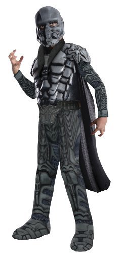 -. Binding : Toy -. Brand : Rubie's -. ClothingSize : One Size -. Color : multi-colored -. Department : mens -. Feature : Deluxe General Zod costume features muscle chest jumpsuit with attached boot tops / Cape and molded belt included / Officially licensed Man of Steel costume / Child size Large fits up to 60 Inch tall with a 31 to 34-Inch waist, 35 to 39-Inch chest and 35 to 39-Inch hips / Rubies has Superman costumes and accessories in sizes and styles for the entire family -. Label : Rubies - Domestic -. Manufacturer : Rubies - Domestic -. Model : 886896L-P -. MPN : R886896 -. NumberOfItems : 1 -. PackageQuantity : 1 -. PartNumber : R886896 -. ProductGroup : Toy -. ProductTypeName : CHILDRENS_COSTUME -. Publisher : Rubies - Domestic -. ReleaseDate : 2013-08-05 -. Size : One Size -. Studio : Rubies - Domestic -. Title : Man of Steel Deluxe Child's General Zod Costume -. Warranty : No Warranty