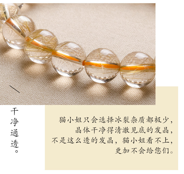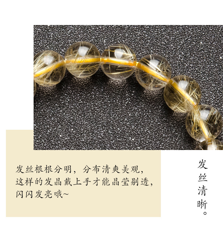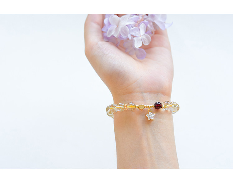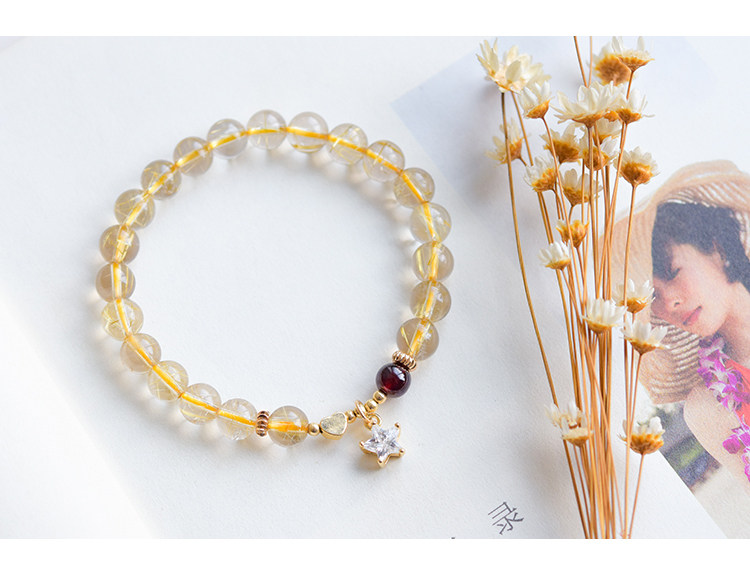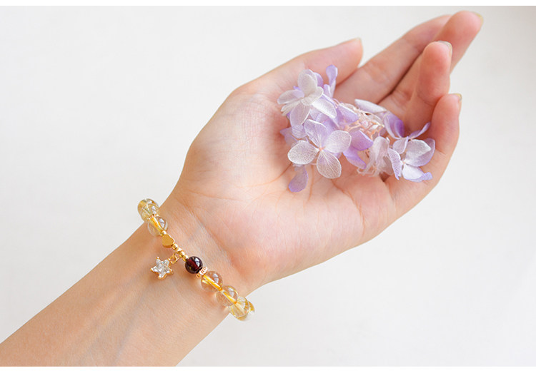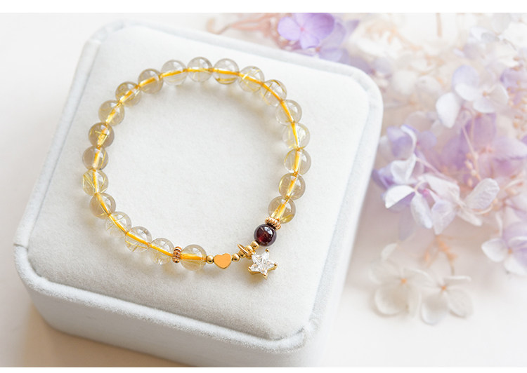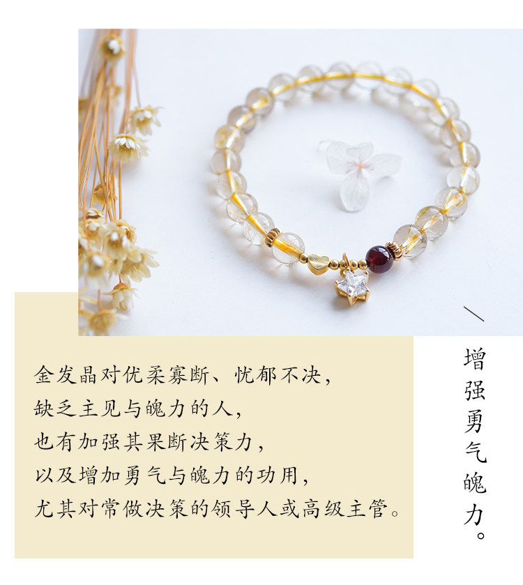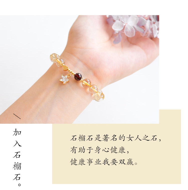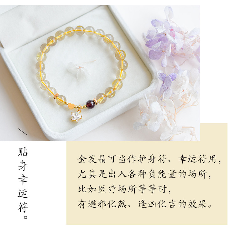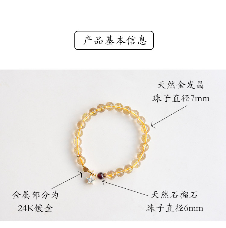 天然金发晶手链女单圈 招财水晶配石榴石手串生日礼物