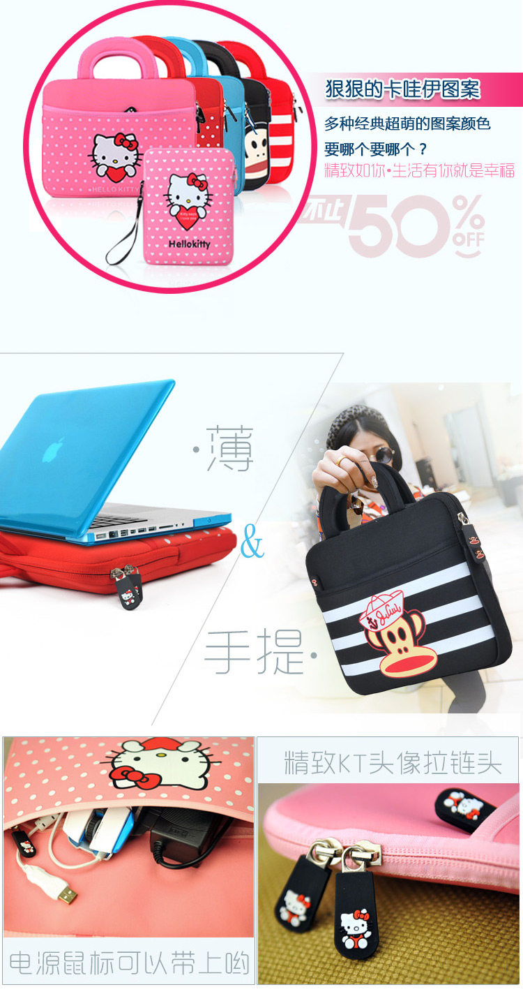 可爱卡通笔记本电脑包14寸手提潮男女士软包15.6内胆包平板保护套