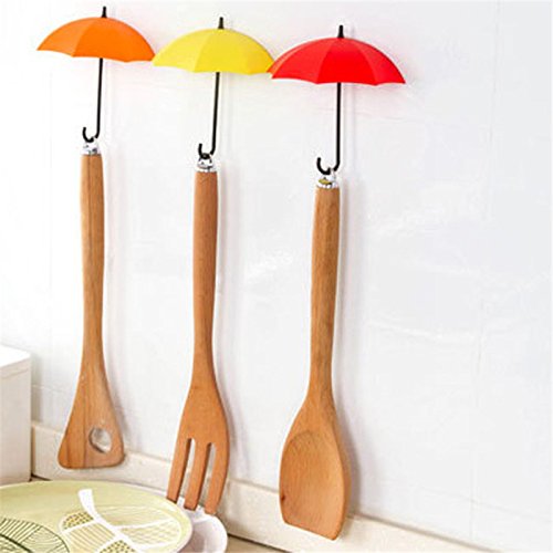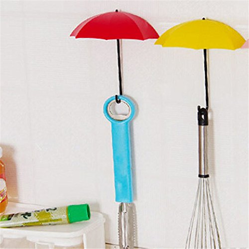 -. Feature : Lovely umbrella hook,decorating your house,hanging all kinds of debris, say goodbye to messy home / You can choose to use it as a hook, or turn it over to use it as a storage small belongings(keys/coin/beads) if you want / In the bathroom, you can incorporate jewelry, wash brush, bath balls, etc. In the kitchen,you can hold towel, knife, clean ball, wash cloth, etc. In the office, you can organize your clips, scissors, pin, nail cutter and etc / Easy to Stick and Remove / Please do not stick them to ceramic tile, glossy glass wall and other surfaces that are very sleek.Within 24 hours after install, please do not hang things