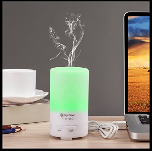 USB Essential Oil Diffuser - 50ml Portable Mini Diffuser - Ultrasonic Cool Mist Aroma Humidifier - Color LED Lights Changing And 3 Timer Settings - Auto Shut...