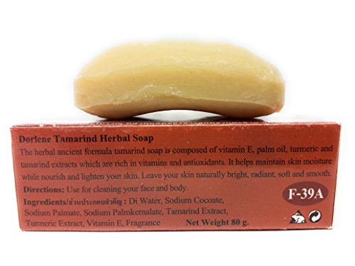 Dorlene Tamarind Herbal Soap consists of glycerine, coconut oil, palm oil and tamarind extract. It is effective to clean and nourish skin. Leave your skin naturally bright, soft and smooth. Directions: Gently apply on your skin with water at bath time and rinse off completely, can be used for cleaning the desired areas, such as armpits. Net Weight 80 g. Safety Warning: This is for external use only. If experiencing burning or any skin irritation, please stop using and consult your dermatologist immediately.Feature