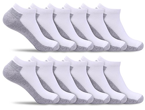 -. Feature : Include (12) twelve pairs of low cut athletic socks / Half cushioned soles for extra comfort. Reinforced heel and toe for durability / Versatile usage as either a casual or athletic sock / Light weight performance fabrics keep your feet ventilated during athletic activities / Premium poly-cotton blend for durable construction and a lasting soft touch.