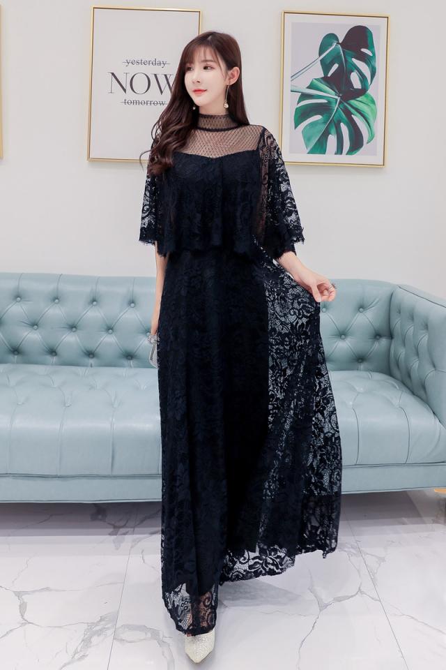 レース 刺繍 ケープ風 マキシ丈 ロングワンピース パーティードレス 結婚式 二次会 披露宴 パーティー 女子会 デート ディナー 演奏会 コンサート 発表会 卒業式 謝恩会 お呼ばれ キャバ 体型カバー 2L 3L 4L 5L 20代 30代