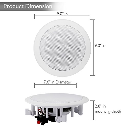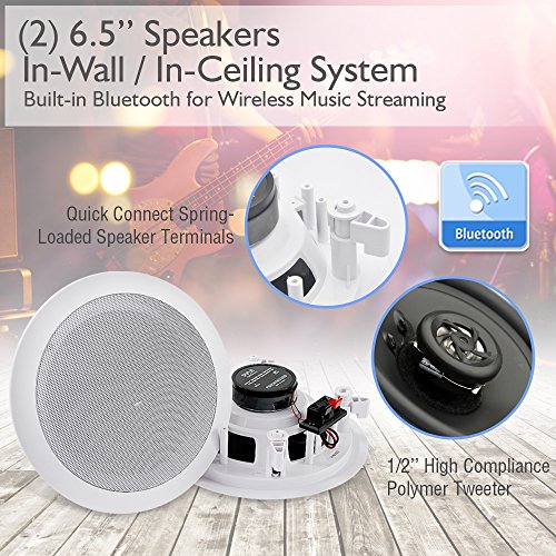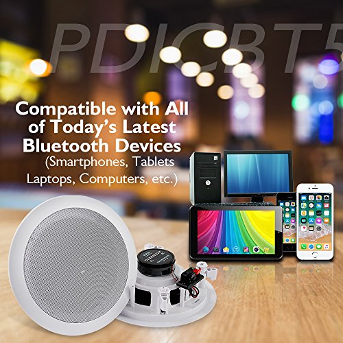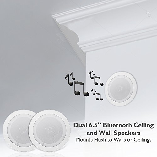 -. Binding : Electronics -. Brand : Pyle -. Color : White -. EAN : 0068888772518 -. Feature : BLUETOOTH - Built-in Bluetooth no hassle wireless music streaming from all your favorite Bluetooth enabled devices. Perfect for incredible stereo sound in any room in your home from speakers you can barely see without using any floor or shelf space. / SPEAKER GRILL - Includes built in round stain resistant speaker grills. Match existing flush mounted designs in your home or workplace for a clean look & achieve wide-range sound performance without compromise. / SEAMLESS INTEGRATION - Perfect sound wherever you need it. Great for existing home theater systems and custom applications this Pyle 2-way in-ceiling or in-wall speaker system will deliver on-demand crisp audio sound clarity all the time. / FLUSH MOUNT DESIGN - Compact flush mount design for simple easy installation in-wall / in-ceiling , or pre-cut speaker openings, for in home use, office, professional, or custom audio applications on any flat surface. / EASY TO INSTALL - Includes a cut-out size template & quick connect sP.R.Ing-loaded speaker terminals with sP.R.Ing loaded fixing clips for simple, easy, no hassle installation with included speaker connection wire, bluetooth Controller & power supply. -. IsAdultProduct : 0 -. Label : Sound Around -. LegalDisclaimer : This product contains chemicals known to the State of California to cause cancer and birth defects or other reproductive harm. -. Manufacturer : Sound Around -. Model : PDICBT652RD -. MPN : PDICBT652RD -. NumberOfItems : 1 -. PackageQuantity : 1 -. PartNumber : PDICBT652RD -. ProductGroup : Speakers -. ProductTypeName : SPEAKERS -. Publisher : Sound Around -. Size : N/A -. Studio : Sound Around -. Title : Pyle Pair 6.5” Bluetooth Flush Mount In-wall In-ceiling 2-Way Universal Home Speaker System SP.R.Ing Loaded Quick Connections Polypropylene Cone Polymer Tweeter Stereo Sound 200 Watts (PDICBT652RD) -. UPC : 068888772518 -. Warranty : 1 Year Limited