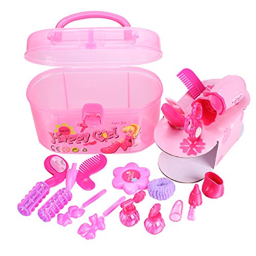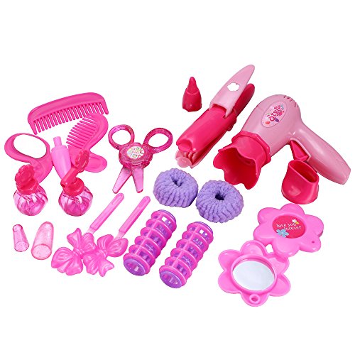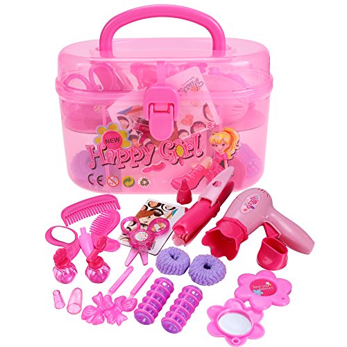 Set includes Hairdryer, Curler, Comb, Curling Iron, Scissors, Mirror, Carrying Case and so on. Great pretend play toy for your little girls