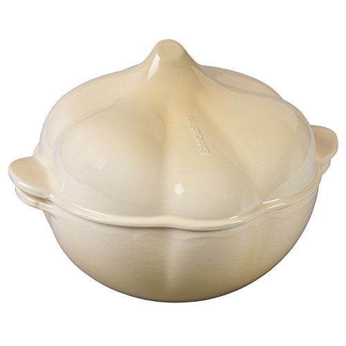 Serve soups and side dishes in this charming garlic cocotte from Le Creuset. Combining performance and quality of Le Creuset enameled cast iron with a fun and appealing shape ideal for gift giving and decoration, this garlic shaped cocotte is made from the lightest enameled cast iron available. This durable cocotte has a colorful, long-lasting exterior enamel that resists cracking and chipping, along with an interior enamel that resists staining and dulling. The sand colored interior enamel also makes it easy to monitor food as it cooks, preventing burning and sticking. Whether serving hearty stews or healthy vegetable side dishes, the built in lid stabilizers provide a secure, no-slide fit, making transport easy and keeping foods inside piping hot. It is safe for use in the oven, on the grill, all cooktops and is induction ready. With all the appeal of Le Creuset enameled cast iron, this garlic cocotte is quirky and easy to take care of with a quick turn in the dishwasher. Promising customer satisfaction, this cocotte is backed by a manufacturer's limited lifetime warranty.