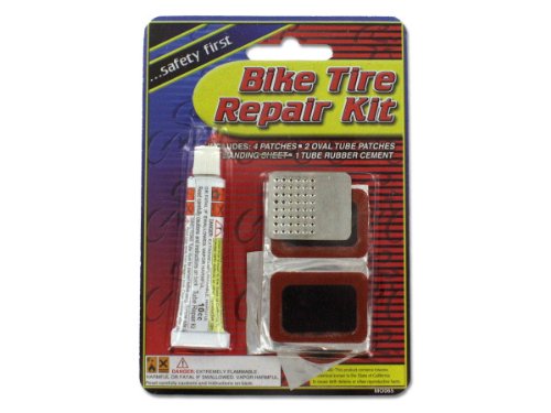 Studio : Kole Imports - Crafts Publisher : Kole Imports - Crafts Binding : Sports Product Description A must-have for bicycle owners, this kit includes four patches, two oval tube patches, two round patches, one sanding sheet and one rubber cement tube. Contains everything bike riders need in case of a flat tire. Instructions included. Comes packaged in blister pack. 0