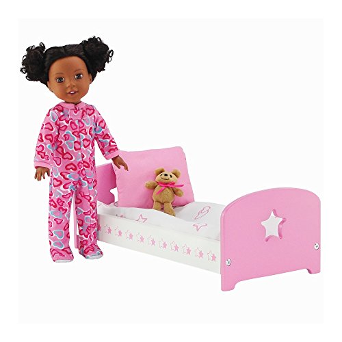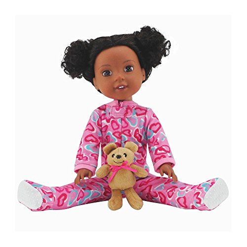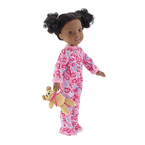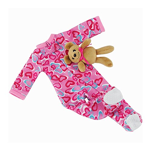 Show your 14 inch doll how much you love her with these perfectly sized, soft footed pajamas. She will be toasty warm all night long! BONUS! Also included is a cuddly teddy bear with matching pink ribbon to keep her company at night. This awesome doll PJ outfit comes packaged in our special pink Emily Rose gift box and is perfect for your 14 inch doll's next overnight party! *Doll Not Included*Feature