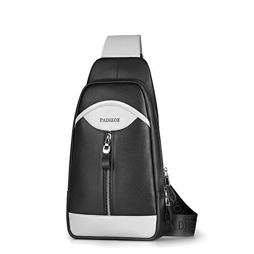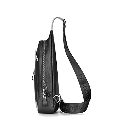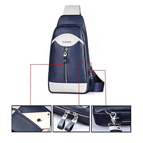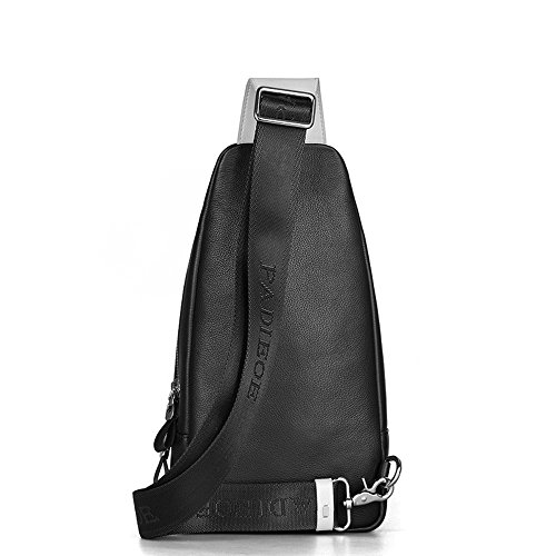 -. Feature : The material of mens chest bag : this very well-made genuine top grain leather and you can smell the leather and looking the little sample in the bag. It is luxurious looking and feeling . / Dimensions:6.2(L)*12.5(H)*2.7(W)inch.The size is measured according to object,Please compare carefully with the model photo and size before buying. / Extra large capacity:card slots,zipper pockets,compartments,mobile phone part. Larger zippered compartment can hold some travel sundries such as small notebook, map, mobile phone and other accessories into the zipper compartment. designed specifically for those who want to leave home and put all your small accessories in one place. / Excellent stitching line and shiny surface of the leather :The stitching is well and perfect matches the color of bag .Make sure that it have a clean and good looking . / With adjustable shoulder straps design : You can adjustable the shoulder strap and use it follow your need when you go out.