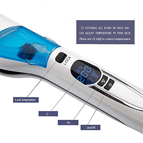 Item type: Ceramic thermostat adjustment segments: 10 material of thermal plate/bar: Tourmaline ceramic min. Temperature: 120 °c power source: Electric temperature controller: Digital voltage: 110-240v (dual voltage) max. Temperature: 230°c dimensions of heating plate: Others power cord tail assembly mode: 360° rotatable plug standard: Us applicable hair: Dry diameter of thermal conductor: Less than15 mm optimal styling time: Less than 1 min. Certification: CE commodity quality certification: 3c,ce model number: Js-5211 service life of thermal plate/bar: More than 50,000 times material: Tourmaline ceramic power: 25w-39w item type: Ceramic color: White package including 1*steam hair straightener 1*comb 2*hairdressing clip 1*water bottle 1*user manual please kindly note : The steam is not so heavy or obvious to see by naked eyes. It aims to moisten your hair when styling, not damp it. You can find out if there is steam coming out or not by checking if there are water drops on the end of the steam groove after styling. Main smart features: Activate steam 360°swivel cord LCD digital display 60 mins auto shut off heat up in 60 seconds dual voltage 100v - 240v adjustable temperature from 250℉ to 450℉ easy to use : Turn it on by press power button and hold for a few seconds.+/-Button merge into only one button, when you need to reduce the temperature, just to adjust to the maximum temperature, press the button again, the temperature will return to the initial minimum temperature, and then you can rise to the temperature you want. When the status display stop blinking, it means it reaches the temperature you set and you can start to use it.Feature