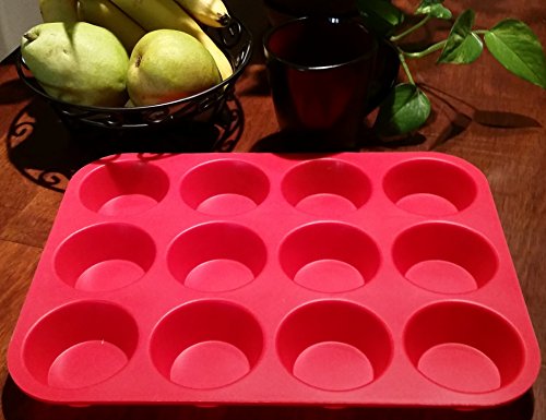 -. Title : BakeMaster Silicone Muffin Pan Silicone Cupcake Pan 100% Food Grade Silicone Quiche Pan BPA free Non stick Red Silicone Cupcake Maker Lightweight Cupcake Mold Microwave and Dishwasher Safe