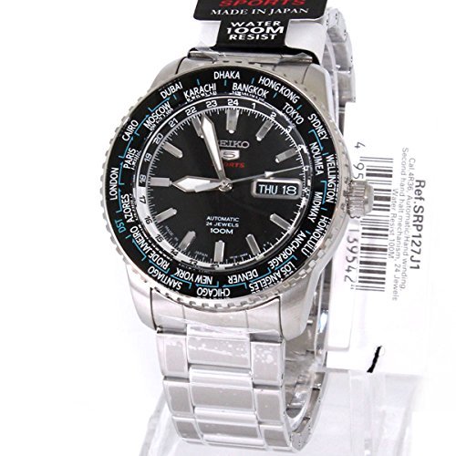 Seiko Stainless Steel Automatic Black Dial World Time Bezel Men