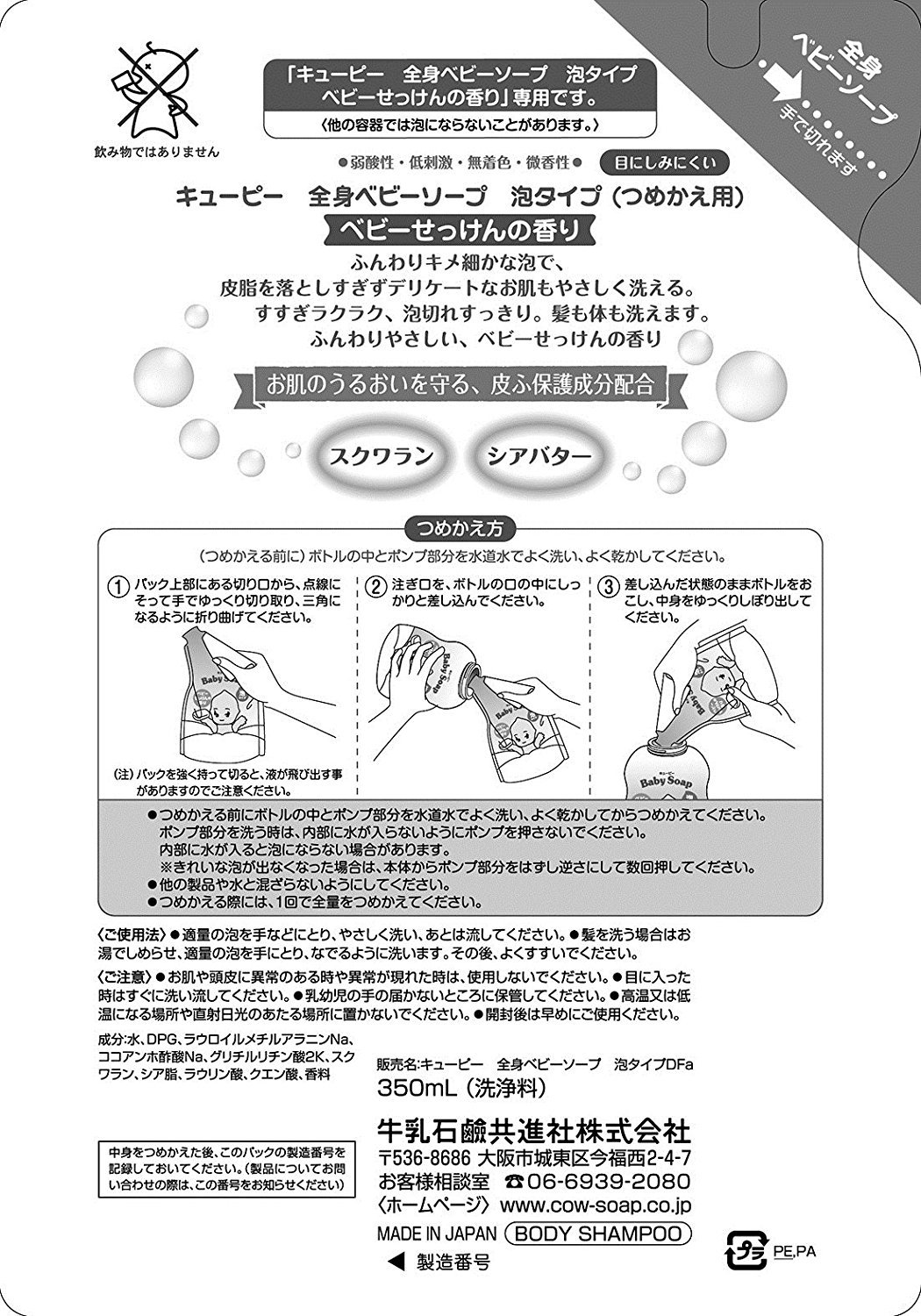 I am using this now since my birth, even now two years old. It comes out with bubbles so it's very easy. It seems interesting also to the package of Kewpie, and it was also unlikely to be playing with a bottle.