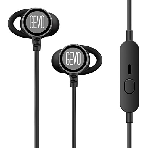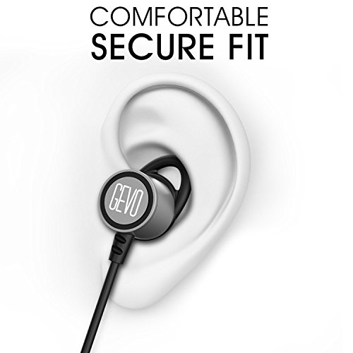 GEVO Noise Cancelling In-Ear Headphones with Mic, Stereo Bass Earbuds, Sports Headphones with Ear Fins, Secure Fit for Exercises like Running, Jogging, Gym In Ear Earbuds(gray-black)