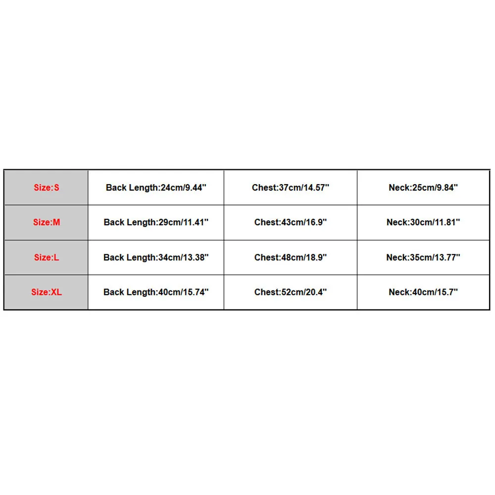 | Size:XL | Back Length:40cm/15.74" | Chest:52cm/20.4" | Neck:40cm/15.7" |