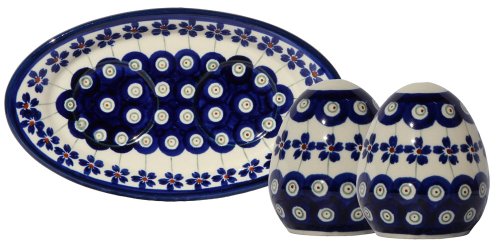 Polish Pottery Salt and Pepper Shakers From Zaklady Ceramiczne Boleslawiec #961-166a Floral Peacock Pattern