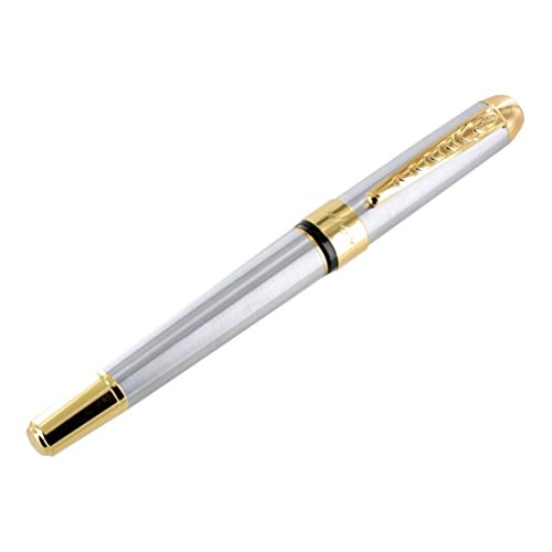 -. Title : BESSKY JnHao 250 Stainless Steel Gold Trim Fountain Pen - Medium