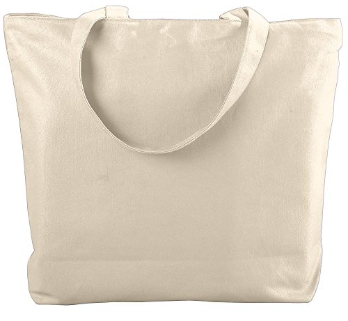 -. Feature : 11 ounce 100% cotton canvas* Zippered main compartment / * Extra long self-fabric handles reinforced at stress points* 5-inch bottom gusset 20" x 15" x 5"
