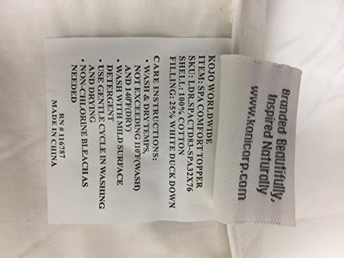 -. Title : Koni Spa Comfort Topper, 25% white duck down, 75% feathers, Twin 32x76