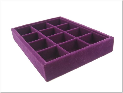 -. Title : Purple Velvet 12 Compartment Jewelry Display Case, 20x15cm, 3 Cases