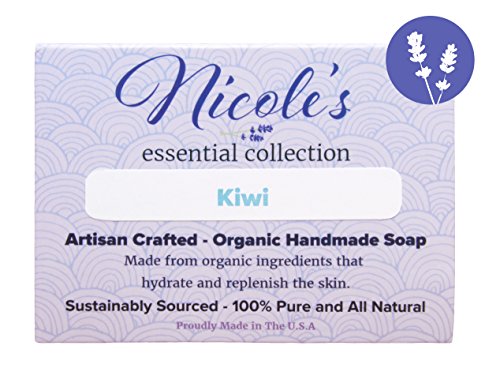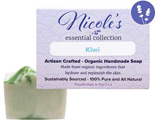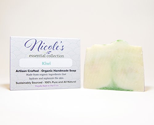 Kiwi - Essential Oil Infused 100% Natural & Organic Bar Soap with Olive Oil, Shea Butter, Coconut Oil, and Mica. Use as a Face Soap or Body...
