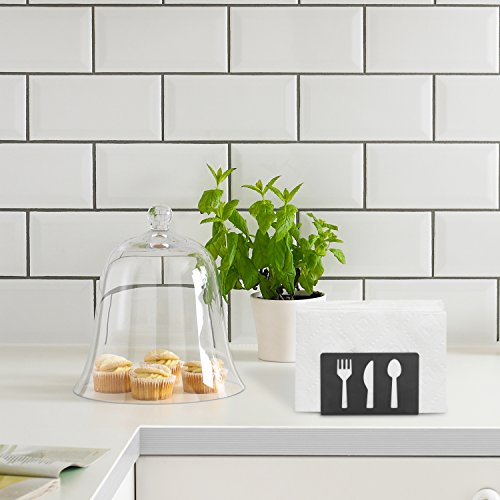 Studio : MyGift Publisher : MyGift Product Description Keep paper napkins close at hand on your coffee table, dining table or kitchen counter with this chic and modern napkin holder. Made of sturdy stainless steel and featuring cut-outs on either side in the shape of spoons, knives, and forks, this small and lightweight napkin rack is easy to transport and easy to refill as needed. Just add this stylish and useful napkin holder to any table or counter to make modern style and convenience a part of your home. **Official MyGift® product includes multipurpose cleaning towel. Napkins are not included.** Approximate Dimensions (in inches): 5.5 W X 4 H X 1.75 D. 0 |
