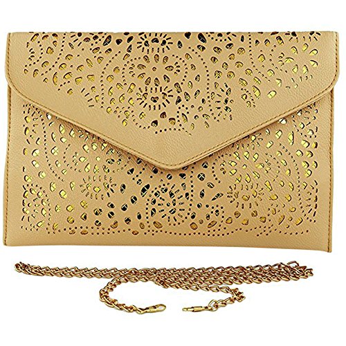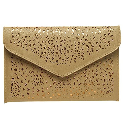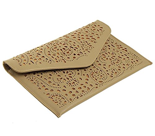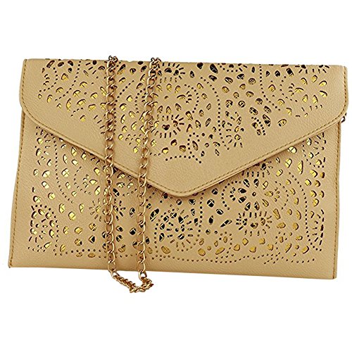 CC-US Women Hollow Out Crossbody Shoulder Bag Floral Pattern Envelope Clutch Handbag Chain Bag