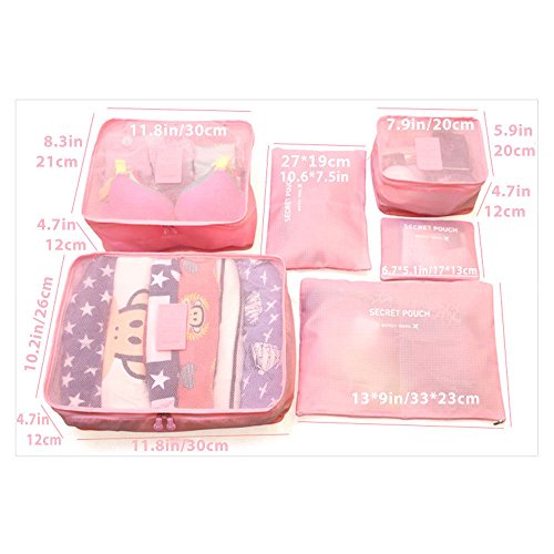 Product Description Perfect travel 6 Set Material: Polyester Nylon Product Weight: 330g Category: Storage bag, sorting bags Usage: traveling, home storage Super practical travel pouch, a buttoned Products Shakusun: (CM) Large mesh bag (42 * 31 * 14): suitable for accommodating clothes, pants and the like. Medium mesh bag (32 * 30 * 14): suitable for the reception underwear, underwear, socks and other clothing. Small mesh bag (31 * 22 * 14): suitable for accommodating cosmetics, towels and other personal items. Large pouch (35 * 27.5): suitable for the reception of slippers and other travel items. Medium pouch (28 * 25.5): suitable for the reception they travel medicine and other odds and ends. Small pouch (26 * 16.5): Storage for toiletries and other small objects. 0