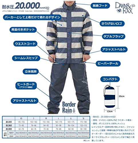 댐 트럭스(DAMMTRAX) 오토바이용 레인 웨어 DAMM & RAX 보더 레인 네이비 3L사이즈 - 레인 웨어