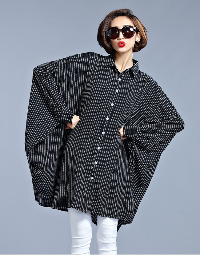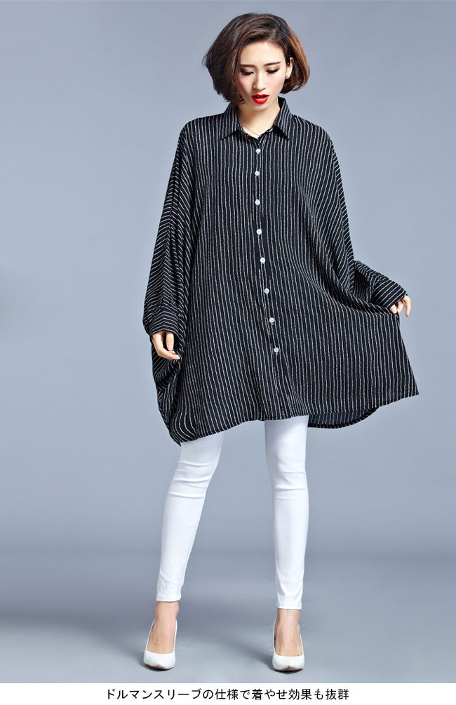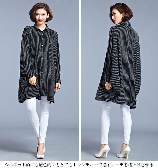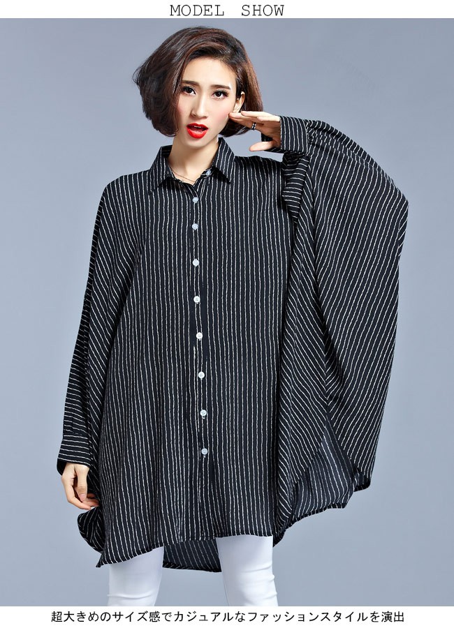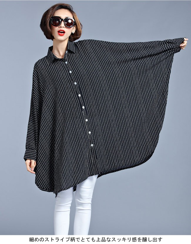 シャツ レディース 体型カバー 大きいサイズ 長袖 ドルマンスリーブ ストライプ柄 女性用 ボトムス ゆったり 夏物 春秋物 オシャレレディース用の長袖シャツが登場超大きめのサイズ感でカジュアルなファッションスタイルを演出ドルマンスリーブの仕様で着やせ効果も抜群細めのストライプ柄でとても上品なスッキリ感を醸し出すシルエット的にも配色的にもとてもトレンディーで必ずコーデを格上げさせるカラー:写真色素材 ポリエステルサイズ(cm) FF 着丈88 バスト260ご注意:※サイズは平置きサイズです。素人採寸ですので、若干の誤差がございます、ご了承ください。
