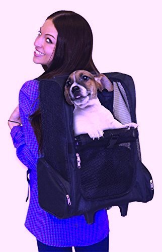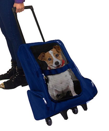 -. Feature : Mesh panels provide ventilation & visibility / Auto-lock telescoping handle allows for correct and comfortable height from 19" to 36" / 2 side pockets for accessories and more, Smooth rolling wheels for comfortable travel / Strong nylon hanger strap, 2 carry straps to use as a backpack / Holds pets up to 30 pounds, Blue