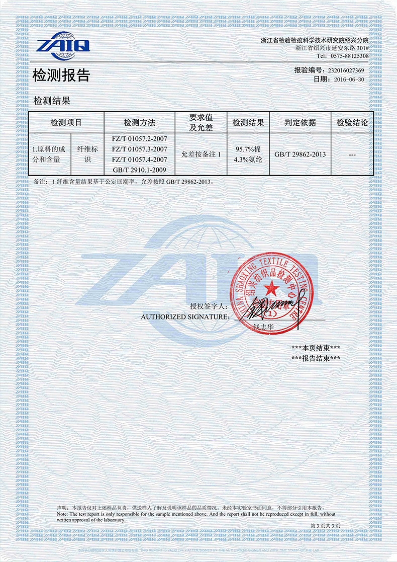 Material Composition: Cotton 95.7% Polyurethane Elastic Fiber (Spandex) 4.3%