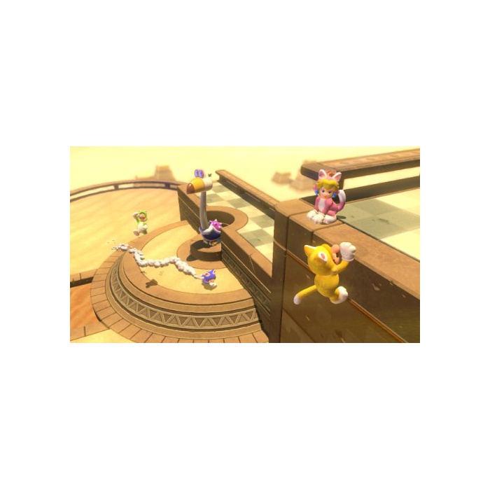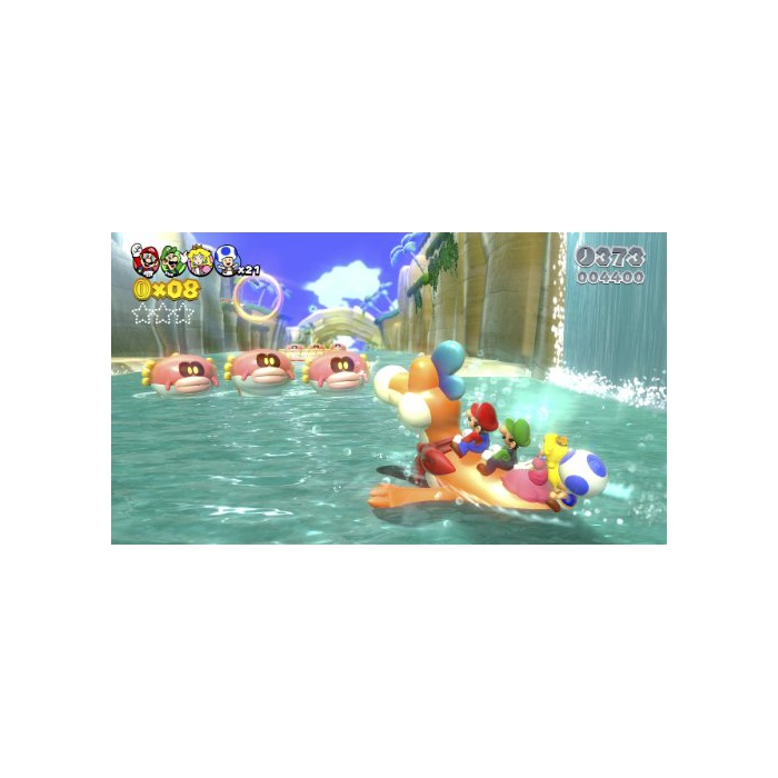 마리오,루이지,피치,《기노피오》에 의한 최대4명의 멀티 플레이나,Wii U GamePad를 기울이고의 카메라 조작 등,Wii U만이 가능한 놀이가 등장.