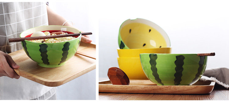 学生 泡面碗水果大碗家用日式陶瓷餐具汤碗创意碗筷套装可爱卡通