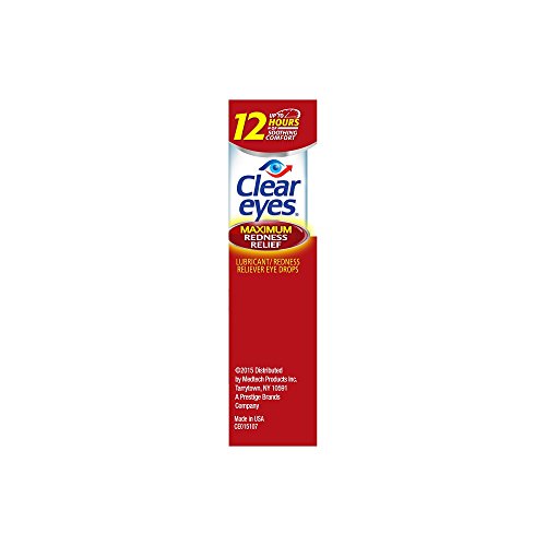 -. Binding : Health and Beauty -. Brand : Clear Eyes -. EAN : 0678112665778 -. Feature : Contains the maximum strength of redness relief / Helps protect against further irritations / Soothes and moisturizes to relieve redness due to irritation, burning and mild dry eyes / From the #1 brand of redness relief eye drops / Provides up to 12 hours of soothing comfort / For the relief of redness of the eye due to minor eye irritations / For the temporary relief of burning & irritation due to dryness of the eye / For use as a protectant against further irritation or to relieve dryness of the eye -. Label : Medtech Product Inc. -. Manufacturer : Medtech Product Inc. -. PackageQuantity : 1 -. ProductGroup : Pantry -. ProductTypeName : HEALTH_PERSONAL_CARE -. Publisher : Medtech Product Inc. -. Studio : Medtech Product Inc. -. Title : Clear Eyes Maximum Strength Redness Relief, 0.5 Fluid Ounce -. UPC : 678112665778