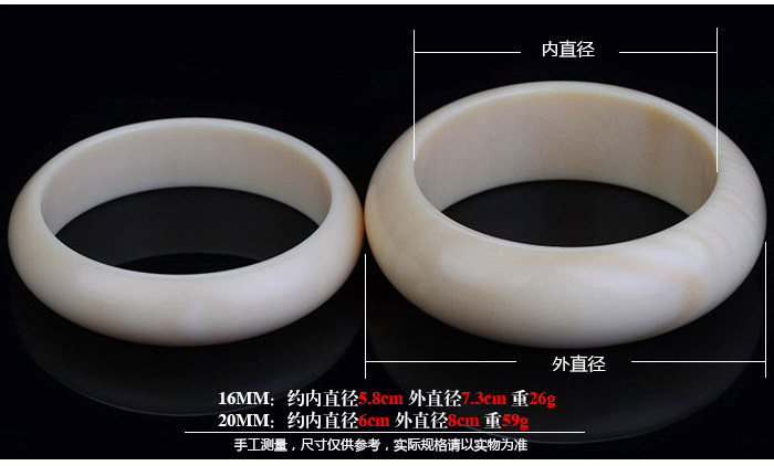 Product features: The ivory?has repeatedly?in the sutras,?and?in Buddhism?also has anoble and sacred?position,?therefore?the ivory?have been?evil?Hannaford,soothe the nerves of?the symbolic meaning of?the house. Product?introduction: Name:?Ivory?depict?Bracelet Material:?resin Size: 16MM?about the?5.8cm diameter,?outer diameter 7.3cm 20MM?about?6cm in diameter,?outer diameter 8cm Weight:?about 16MM?26G?20MM?about 59G |