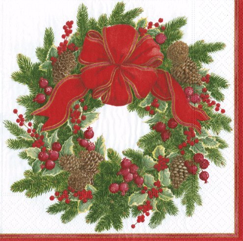 (Caspari)/Kitchen Dining/Bar Tools Glasses/DIRECT FROM USA/Cocktail Napkins Holiday Party Christmas Napkins Entertaining Paper Napkins Evergreen Wreath Pk 40
