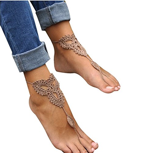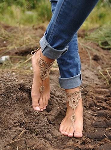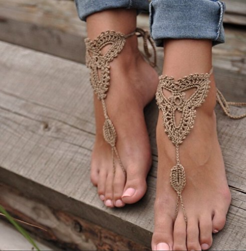 Ewandastore Handmade Crochet Barefoot Sandals,Nude Shoes,Foot Jewelry, Anklet,Yoga Chain,Beach Pool Wedding Jewelry,Footless Sandles,Beach Wedding Summer Shoes,One Size Fits All