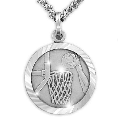 -. Title : Sterling Silver Basketball Sports Medal with Saint Christopher Back, 3/4 Inch