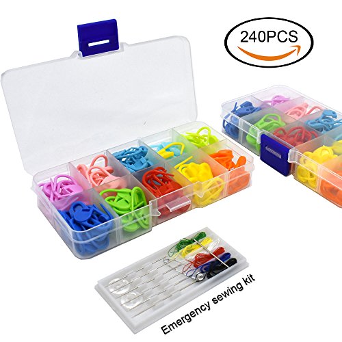 - ❤Package includes: 2 packs plastic stitch markers. Locking stitch markers set: 240 pieces plastic stitch markers in 10 colors, each color for 24 pieces, and you will get 1 pack*Emergency Sewing Kit